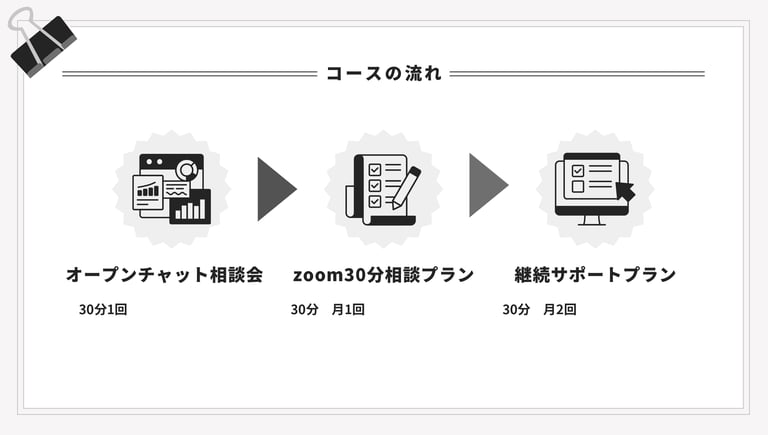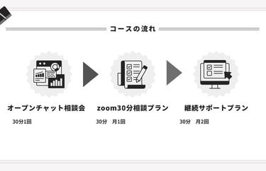 30分相談プランについては、より詳しく幅広く相談希望の方は公式LINEへ誘導→zoom相談の日時を相談心身の不調や日常生活への影響を情報収集・アセスメントし受診の必要性を検討